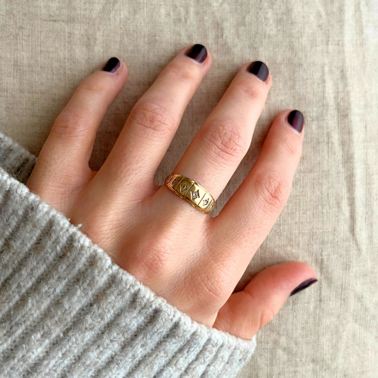 Antique 18ct Yellow Gold 5 Stone Diamond Gypsy Ring Size O