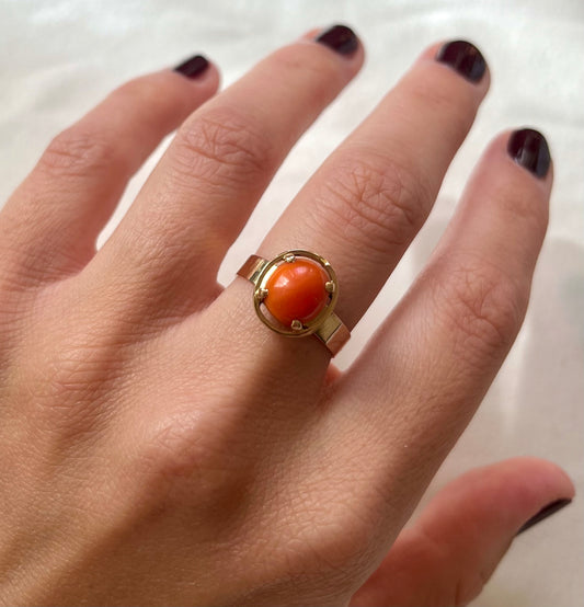Rare Vintage 18ct Gold Egyptian Coral Cabochon Ring, Size QRegular price £485.00 GBPRegular priceUnit price / per-
