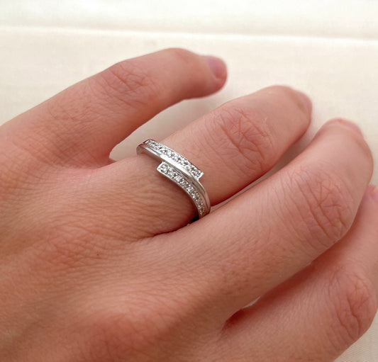 Vintage 9ct White Gold Diamond Twist Front Ring, Size M + 0.5 UK Eternity Ring or Wedding BandRegular price £205.00 GBPRegular priceUnit price / per-