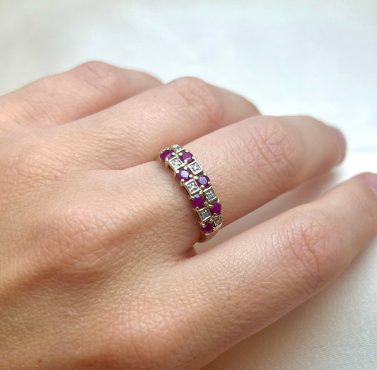Vintage 9ct Gold Ruby and Diamond Multi-Stone Ring, Size P + 0.5 UKRegular price £235.00 GBPRegular priceUnit price / per-