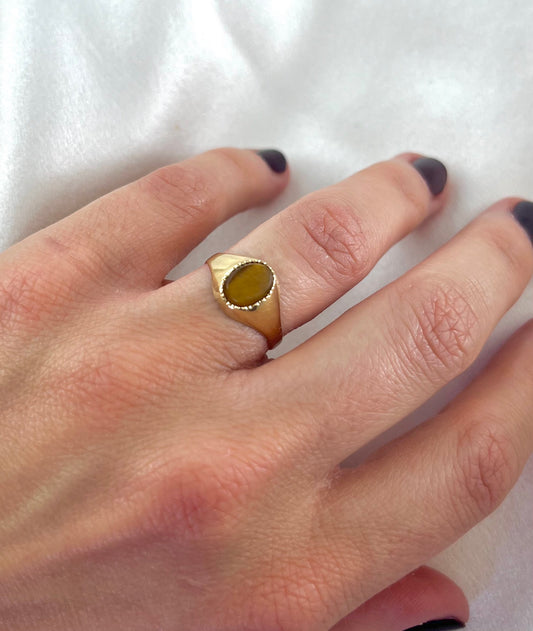Vintage 9ct Yellow Gold Tigers Eye Ring, Size L UK 1970s