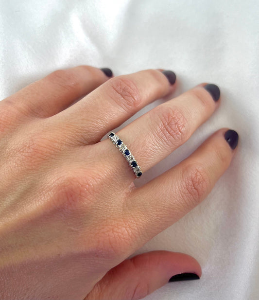 Vintage 9ct Gold Sapphire and Diamond Half Eternity Ring, Size P UK